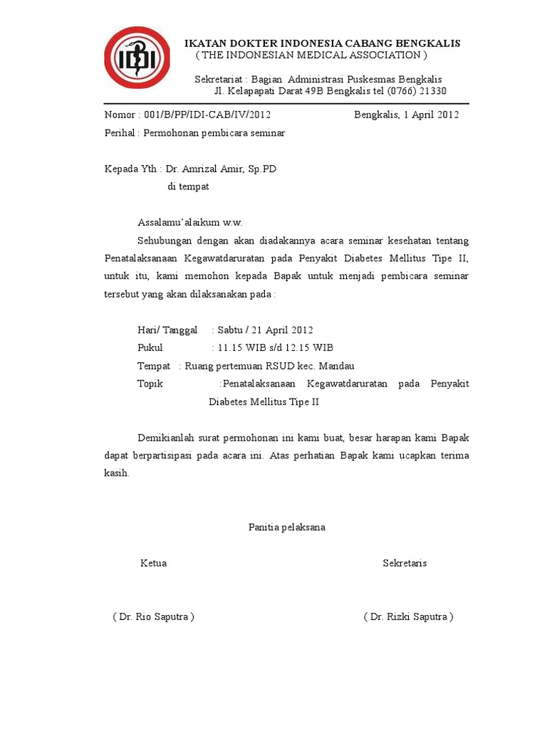 Surat permohonan pemateri seminar Contoh Surat Permohonan Menjadi Pemateri Pembicara Acara Seminar Diklat