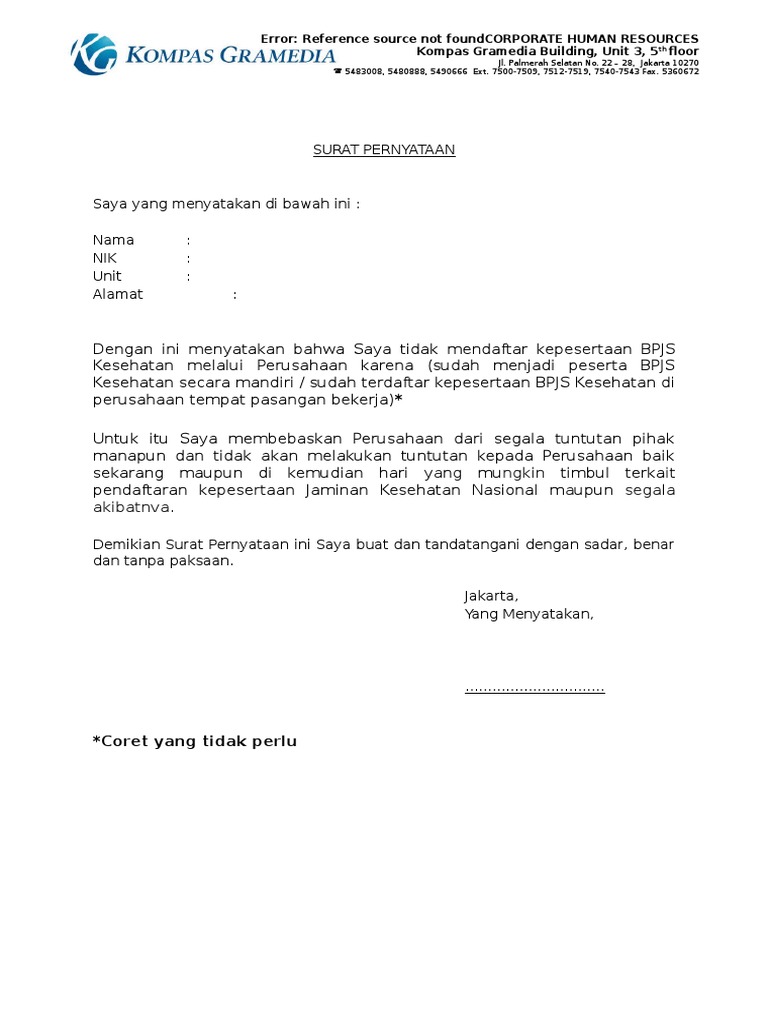 Ruri Ariska Tempat tinggal. Toppers pun tidak perlu lagi datang ke kantor BPJS Kesehatan. Contoh Surat Pernyataan Ketidak ikut sertaan BPJS Kesehatan Perusahaan.