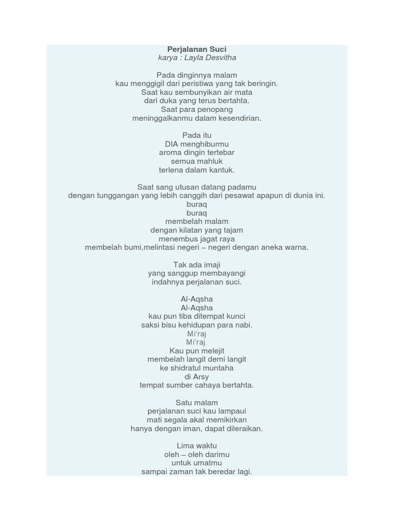Contoh puisi isra miraj Isra Mi Raj Docx