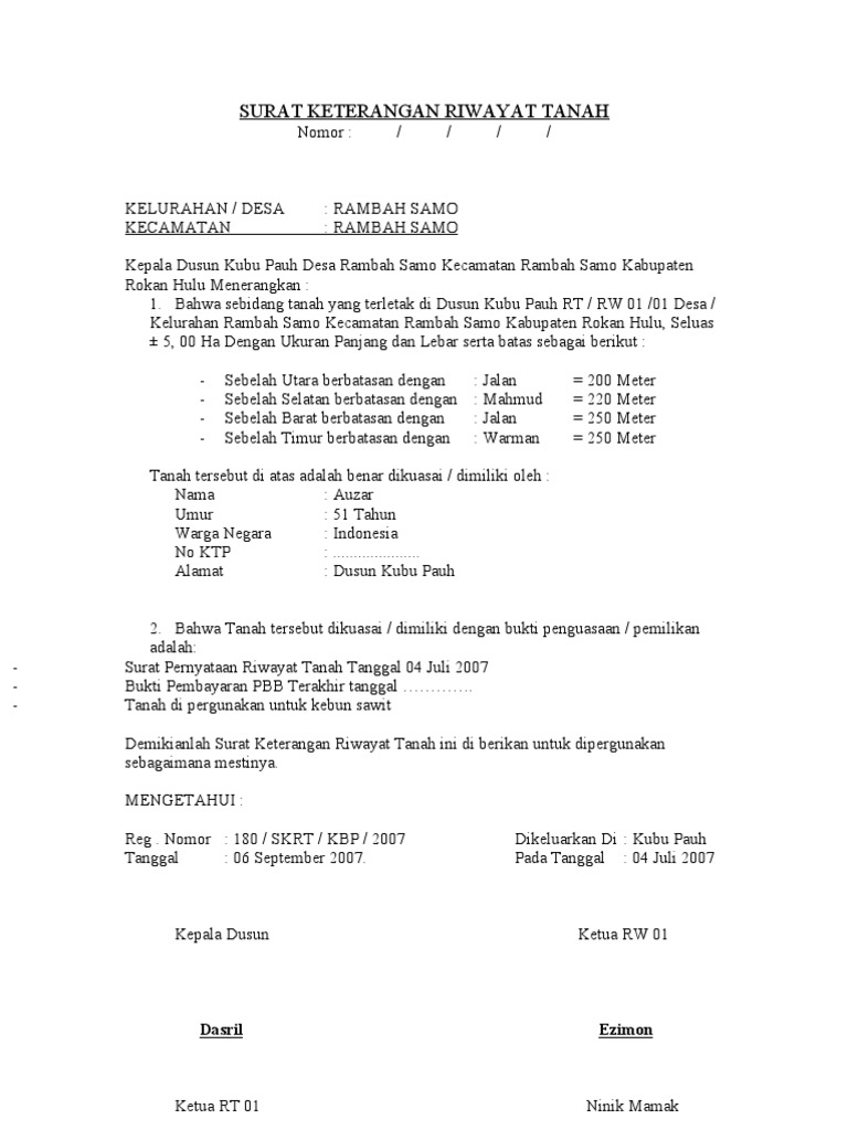 Contoh surat pernyataan riwayat tanah Contoh Surat Keterangan Riwayat Tanah Dari Desa Kumpulan Surat Penting